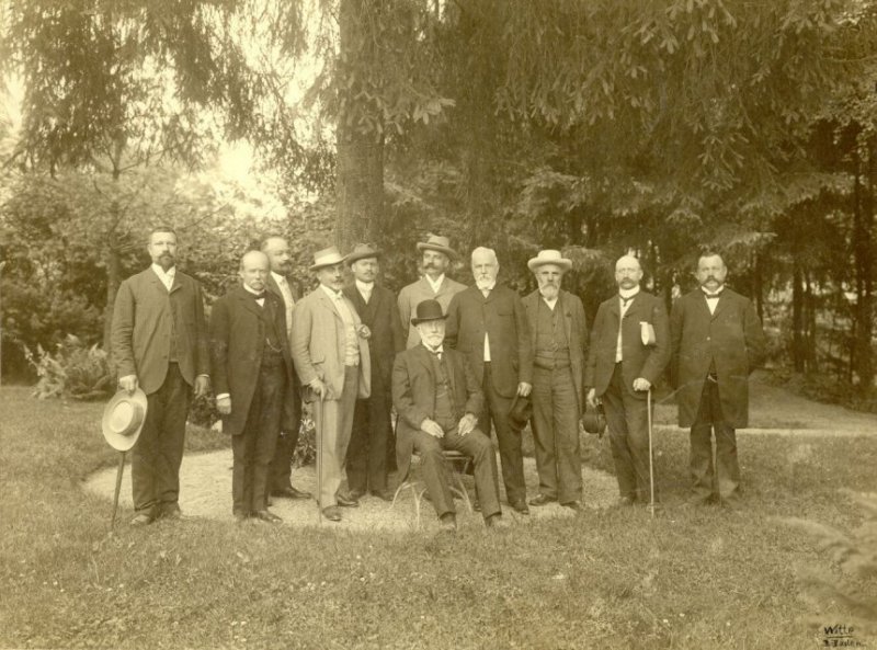 Hutÿra Ferenc 1908-ban Baden-Badenben A nemzetközi állandó bizottság 1908. április 14-17. között tartott ülésén a IX. Nemzetközi Állatorvos-Kongresszust (Hága) készítették elő. A VIII. Nemzetközi Állatorvos-Kongresszus 1905-ben volt Budapesten. A csoportképen balról a harmadik Hutÿra Ferenc (világos öltönyben), a többi résztvevő személye ismeretlen.