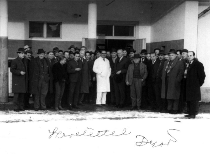 Kómár Gyula kollégái körében (középen) Cegléden (1964 körül)